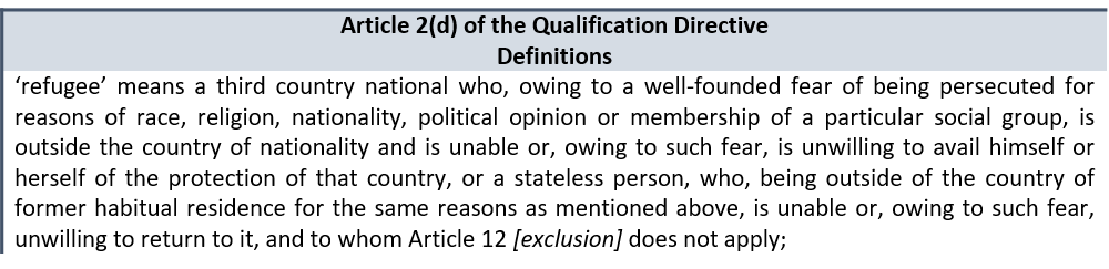 Article 10 QD provides further clarification on the different reasons for persecution (race, religion, nationality, political opinion or membership of a particular social group). A link (nexus) between those reasons and the persecution or the absence of protection should be established in order for the applicant to qualify for refugee status.