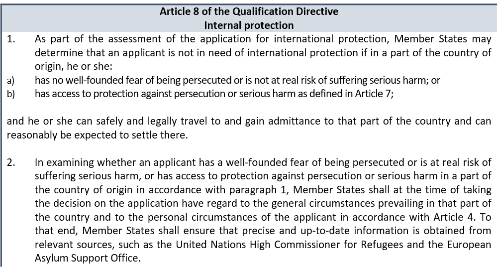 This chapter is developed with reference to Article 8 QD on internal protection: