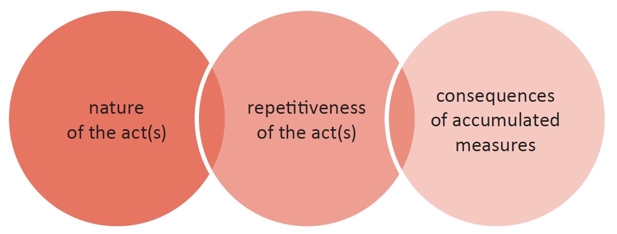 b. An accumulation of various measures, including violations of human rights, which is sufficiently severe as to affect an individual in a similar manner as mentioned in the first point