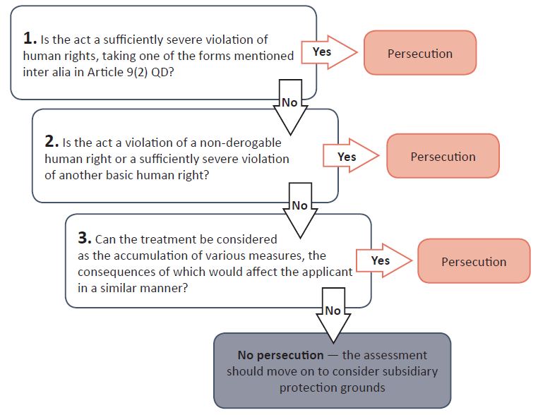 Case officers can follow a three-step practical approach in order to assess whether a particular form of treatment amounts to persecution, as follows.