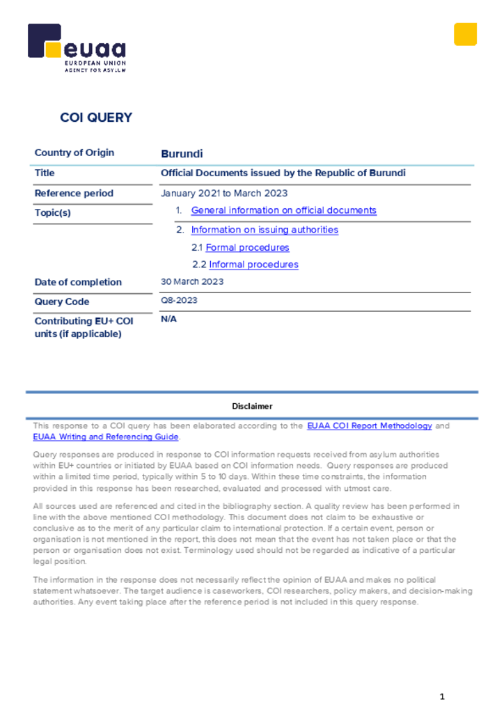 COI Query - Burundi: Official Documents
