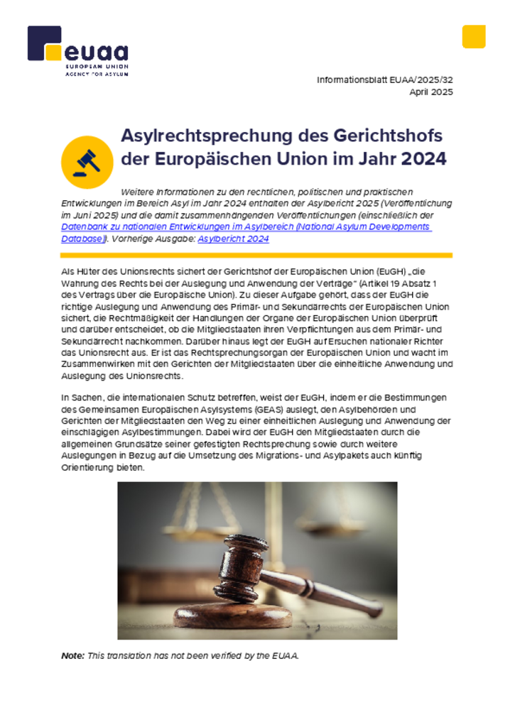 Asylrechtsprechung des Gerichtshofs der Europäischen Union im Jahr 2024